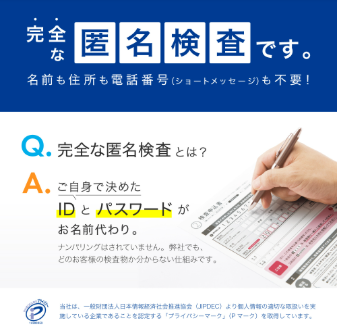 👩🏻 「プライバシーが心配でしたが、届いた封筒も中身が分からないようになっていて本当に助かりました。これで匿名で確かな検査精度の結果がわかるなんて、感激です!」